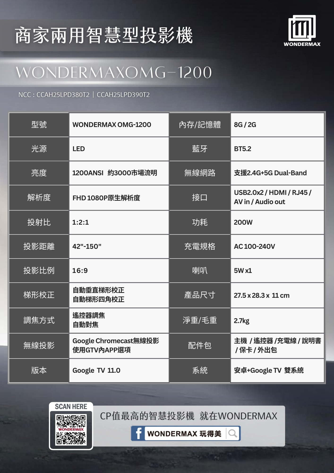 WONDERMAX OMG-1200 商家兩用智慧型投影機